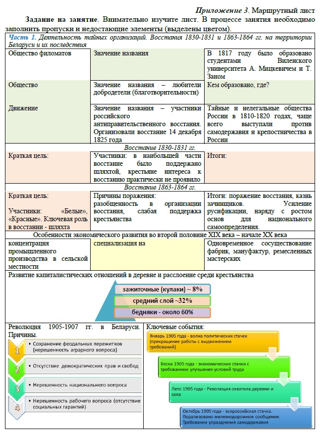 Вопросы, задания и их содержание носят ориентировочный характер, разработаны в соответствии с программой и календарно-тематическим планированием по учебному предмету “История белорусской государственности”, разработанной цикловой комиссией социально-гуманитарных учебных предметов. Задания могут быть адаптированы и изменены преподавателем в зависимости от конкретных задач занятия и возможностей учебной группы, оснащения учебной аудитории.